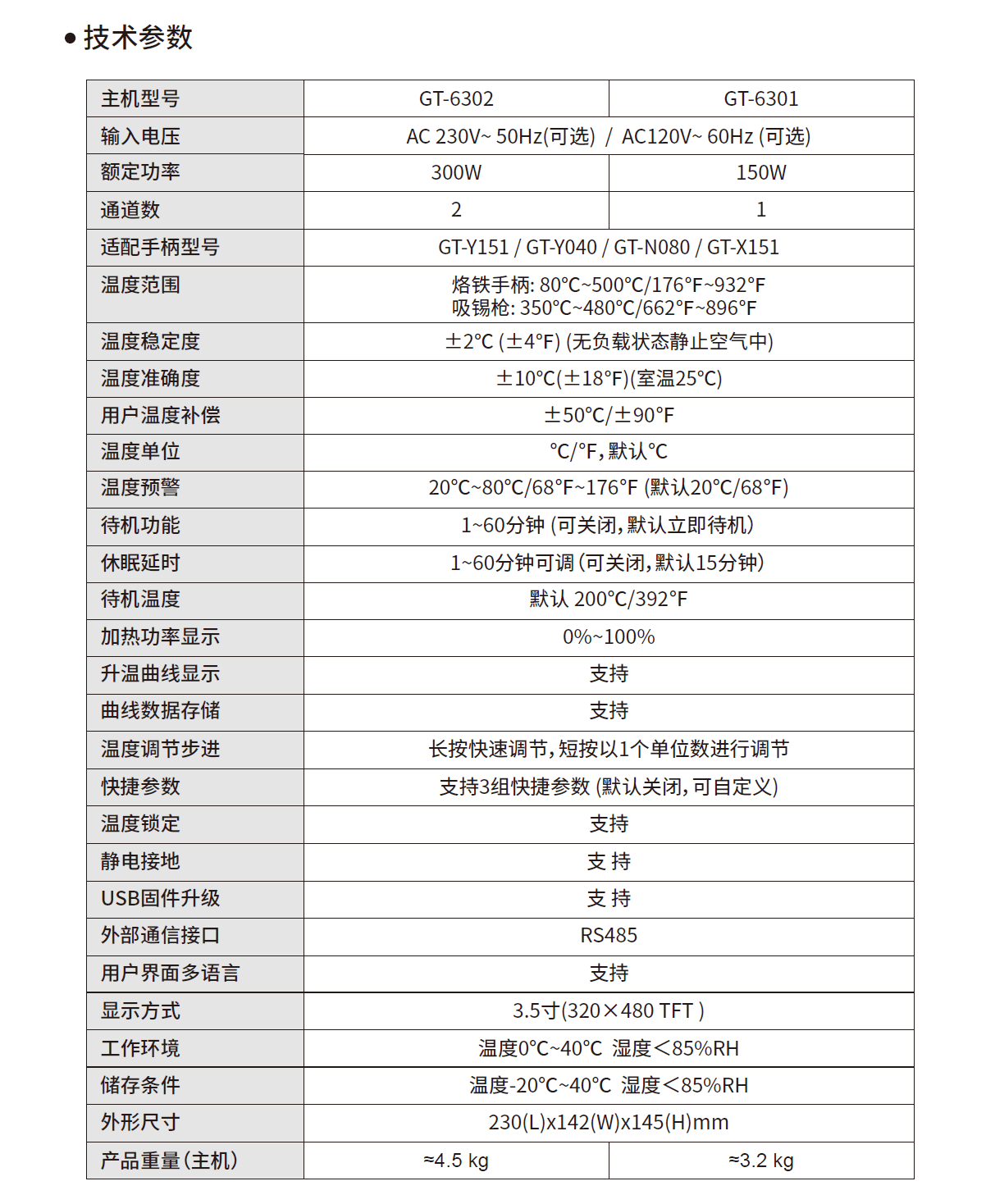 ●整机功率150W,发热芯一体式设计,烙铁头升温回温速度既快又稳;